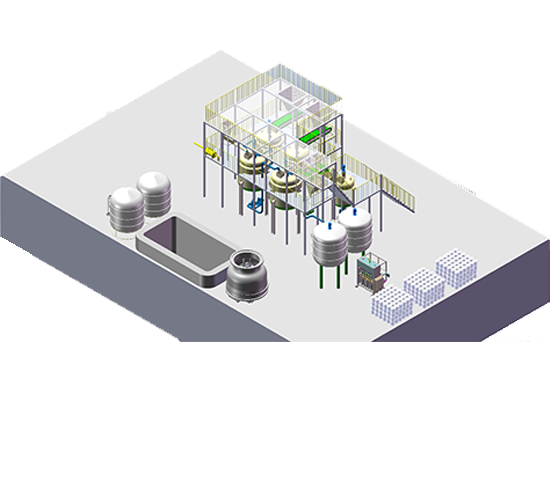 2.設(shè)備包括工業(yè)純水機,固體計量秤,液體計量設(shè)備,反應(yīng)釜(元素消化器),固液分離機,投料平臺,原料提升機,冷卻成品罐,冷卻塔,灌裝生產(chǎn)線。